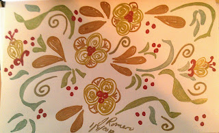 I only like a couple of these (the 5th and 6th)...but want to keep this real so that in 52 weeks I can look back and see what progress I have made! The theme is "doodling" so I feel okay with these, even though they aren't particularly outstanding in any way...it's getting my pen moving! Doodling to me, is something created without overthinking it...anything from repetitive graphic designs to mindless sketching done without an end purpose or any fore planning...so I think these qualify.